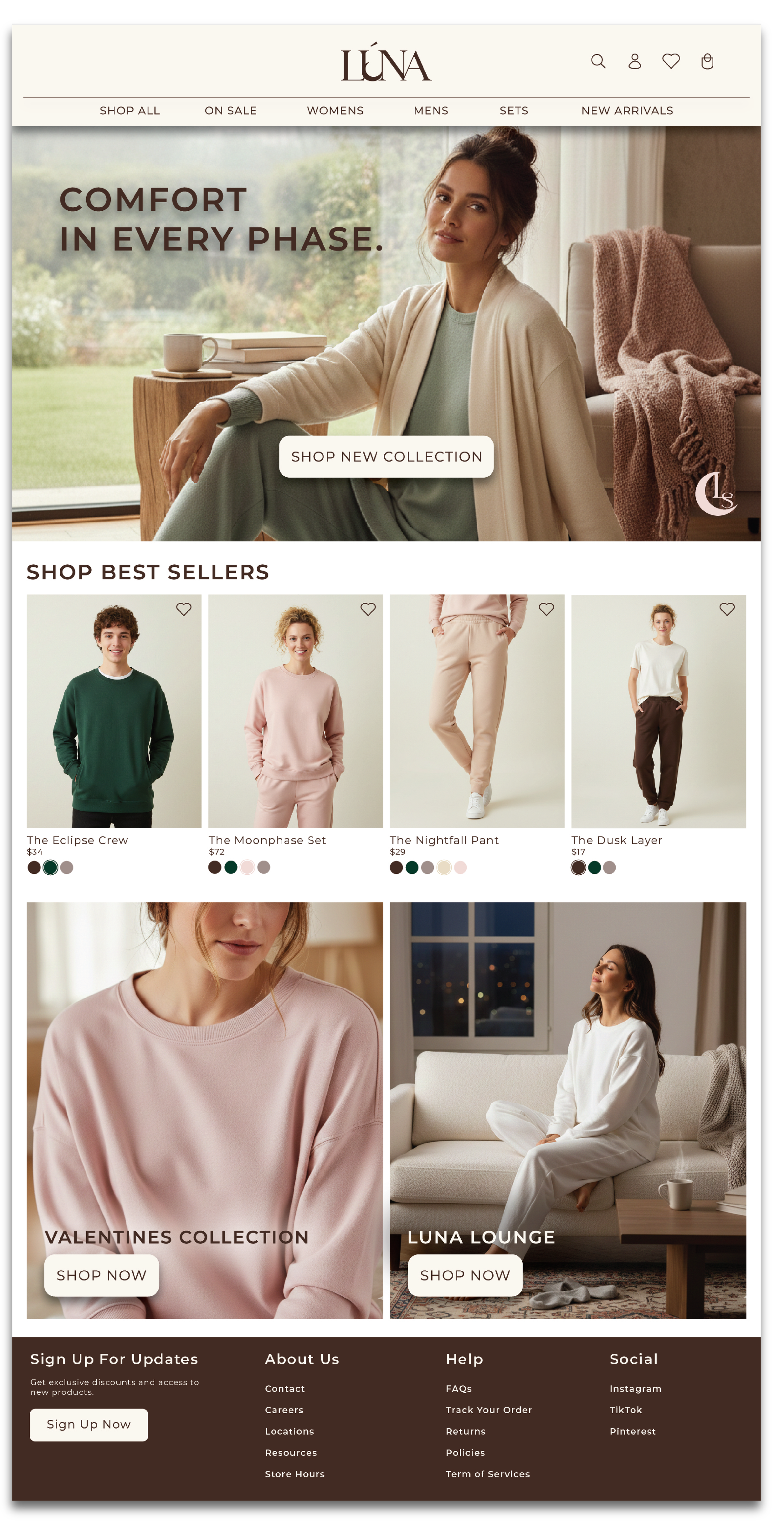 LÚNA Studio is a contemporary clothing brand focused on elevated everyday essentials. The brand blends minimalist design with thoughtful details, targeting consumers who value quality, comfort, and subtle self-expression. This project explores brand identity, visual systems, and marketing assets for a modern fashion label.